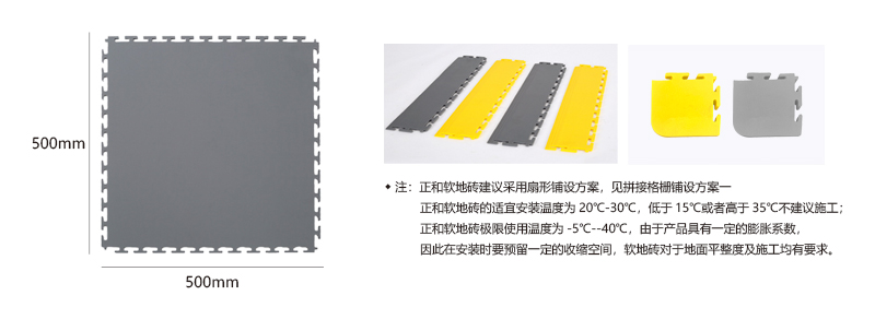 軟質(zhì)絕緣地板能夠?qū)⒚總(gè)獨(dú)立的地板快速拼裝成整體地面,專利型鎖扣結(jié)構(gòu)連接能力更強(qiáng),可承受叉車的來回碾壓。施工過程中無需膠黏劑等材質(zhì),具有施工簡單快速、色彩絢麗、美觀大方、可移動(dòng)性強(qiáng)、可重復(fù)使用等特點(diǎn)。